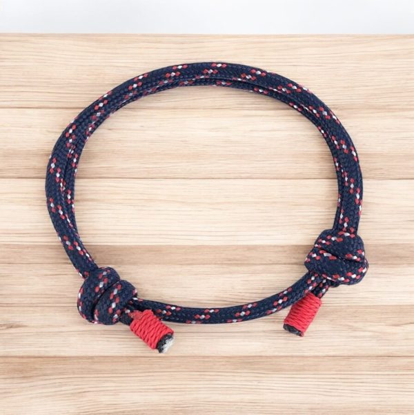 Ez a letisztult, sötétkék alapszínű karkötő diszkrét piros-fehér mintáival igazán visszafogott, mégis karakteres darab. Tökéletes választás azoknak, akik szeretik az egyszerű, de stílusos kiegészítőket. Állítható méretének köszönhetően bármilyen csuklón jól mutat – hétköznapi viseletre, ajándékba vagy barátságkarkötőként is ideális.
