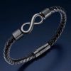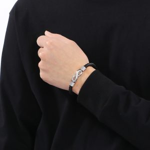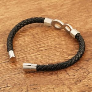 A végtelen szimbólum időtlenséget és erős érzelmi kötődést jelképez – tökéletes választás olyan különleges személy számára, akinek szeretnéd kifejezni, hogy a kapcsolat örök. A fonott fekete bőr és az ezüst színű részletek elegáns, modern megjelenést adnak, míg a mágnescsat kényelmes és gyors használatot biztosít.