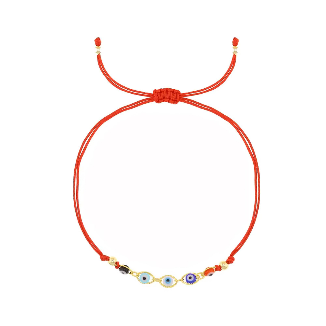 Szín: Piros zsinór, arany színű elemek, színes „evil eye” díszek